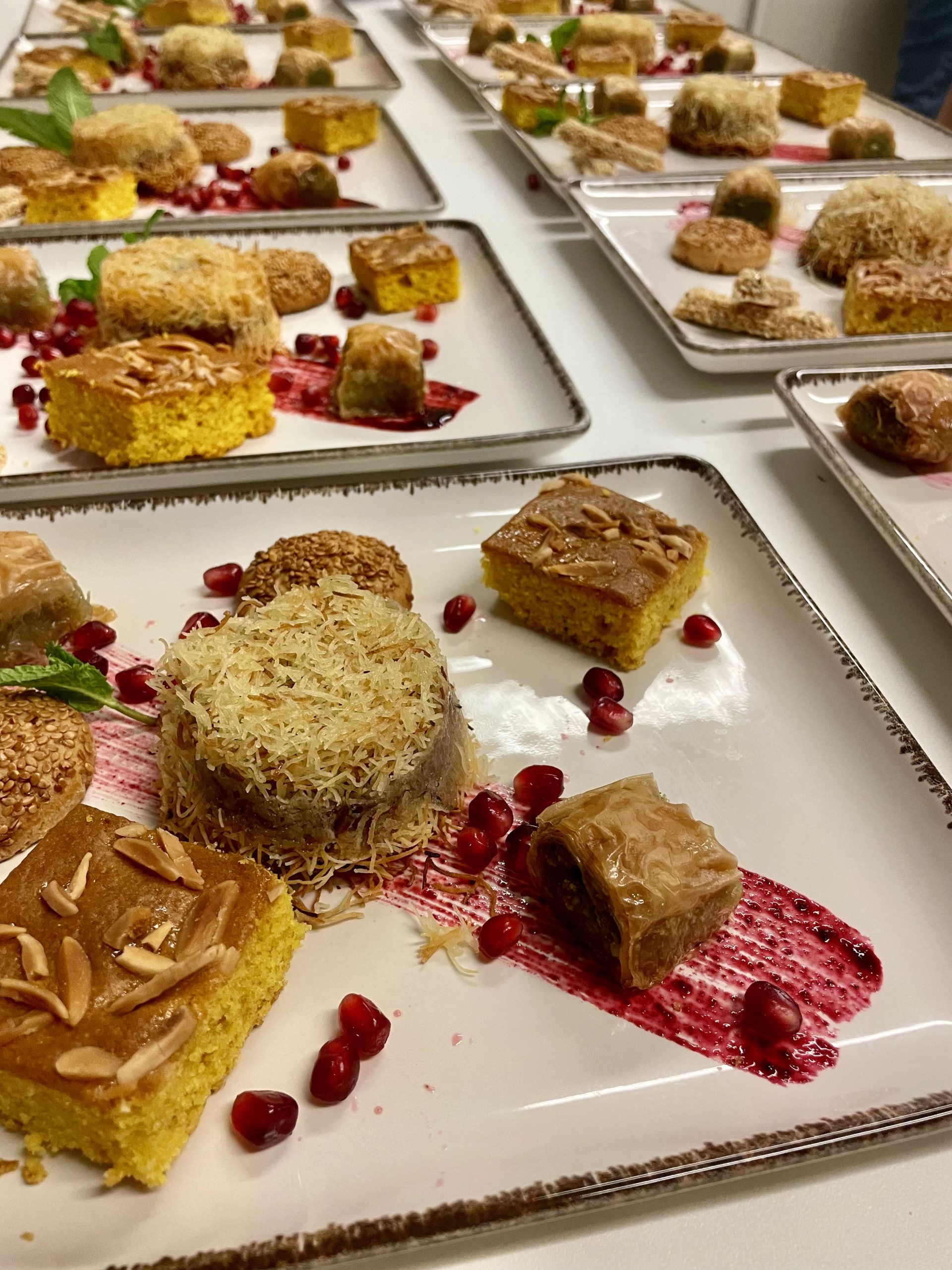 Der Abend beginnt entspannt mit einem Aperitif und führt euch durch eine liebevoll zusammengestellte Auswahl orientalischer Speisen: eine wärmende Suppe, verschiedene Vorspeisen wie Hummus, Fattoush, gefüllte Teigtaschen und weitere Köstlichkeiten. Den Abschluss bilden süße arabische Desserts – anders als das, was ihr sonst aus unserem Café kennt, aber genauso mit Herz gemacht.